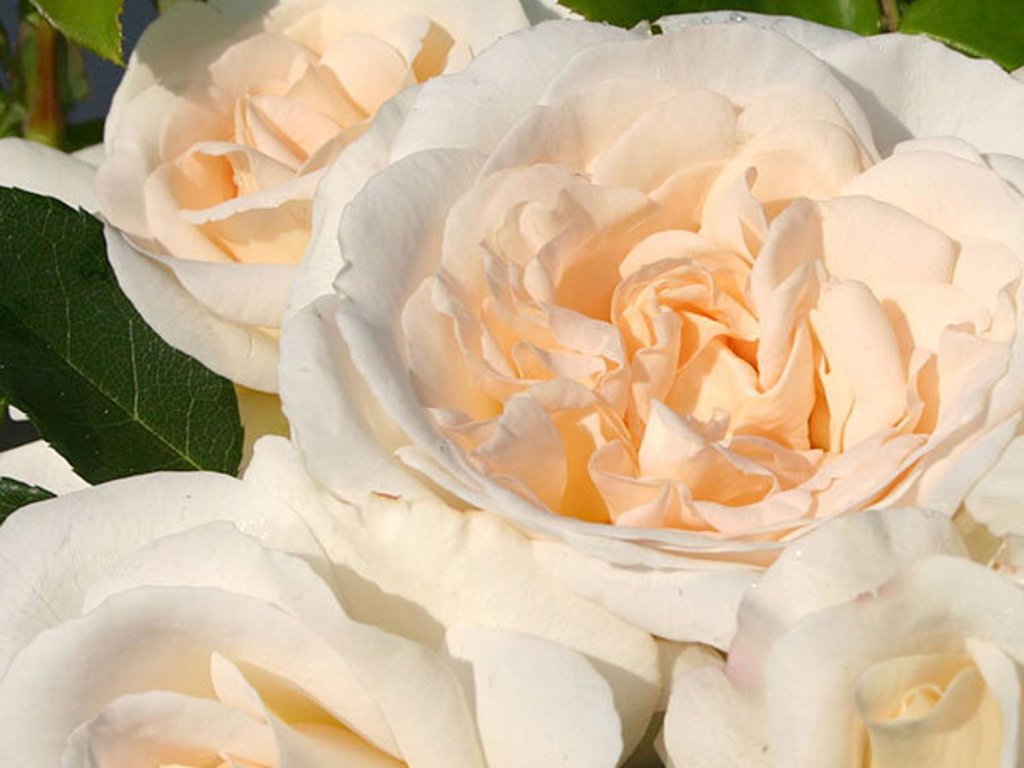 Růže 'Kosmos®' - mnohokvětý kultivar, dorůstající výšky 80 cm a 50 cm šířky. Květenství krémově bílé barvy, působí velice elegantně a romanticky. Pyšní se jemnou vůní, připomínající jablka. Nakvétá opakovaně po celé léto až do podzimu a je dobře odolná vůči mrazu a chorobám. Nese ocenění ADR. Vynikne ve skupinové výsadbě s nižšími trvalkami, ale zaujme i jako solitéra záhonu.