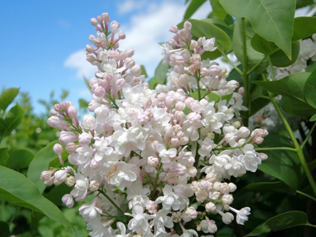 Šeřík obecný 'Krasawica Moskwy' - velmi působivý okrasný kultivar šeříku, patřící mezi nejkrásnější světle kvetoucí kultivary vůbec. Je ceněn pro své velké, plné květy s jemným barevným přechodem, bohaté kvetení a silnou vůni. Jde o jeden z nejznámějších kultivarů ruského šlechtění. Roste jako silný, vzpřímený keř, obvykle 3 až 4 metry vysoký a podobně široký. Vytváří pevnou, dobře větvenou kostru a s věkem působí velmi reprezentativně. Listy jsou velké, srdčité, tmavě zelené, zdravé a dekorativní po celou vegetační sezónu. Květy se objevují v květnu a patří mezi výrazně plné. Poupata jsou růžová až růžově fialová, po rozkvětu se květy postupně mění na čistě bílé s jemným růžovým nádechem. Tento barevný přechod dává latám mimořádnou hloubku a eleganci. Květy jsou uspořádané ve velkých, hustých latách a mají silnou, sladkou a typicky šeříkovou vůni. Je plně mrazuvzdorný, dobře snáší městské prostředí a nebývá náchylný k chorobám. Uplatní se především jako solitéra, v reprezentativních zahradách, parcích a větších pozemcích, kde může plně vyniknout jeho bohaté kvetení. Květy jsou velmi vhodné k řezu a patří k nejoblíbenějším do jarních vazeb.