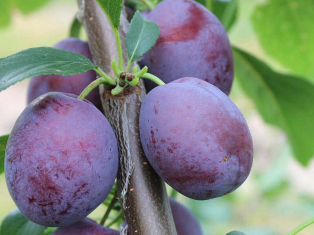 Švestka 'Kamir' - samosprašná hojně plodící pološvestka původem z Kavkazu s jemně vroubkovanými listy. Její plody jsou velmi velké, nesouměrně kulovité. Převládá modrá barva, dužina je zeleno žlutá a dobře oddělitelná od pecky. Chuťově je velmi příjemná, sladká. Plodí ke konci léta, plody jsou vhodné jak k přímému konzumu tak k dalšímu zpracování.