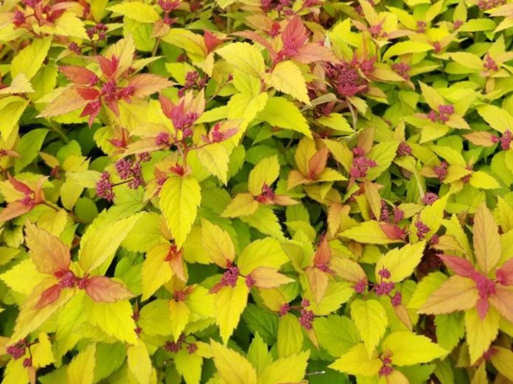 Tavolník japonský ´Goldflame´ - opadavý, listnatý keřík, dorůstající do výšky kolem 60-80 cm. Habitus je hustý a rozvětvený. Listy jsou vejčitě kopinaté, mladé výhony jsou oranžovo-žluté, později se zbarvení mění na žlutou a zeleno-žlutou. Květy jsou zbarvené do sladce růžové, objevují se od června do srpna, tvoří plochá květenství. Ideální do trvalkových záhonů nebo do skalky.