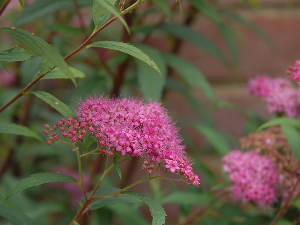 Tavolník japonský 'Neon Flash' - kompaktní tavolník, ceněný pro jasně růžové květy a spolehlivý růst v podmínkách střední Evropy. V severoamerických sbírkách se uvádí jako vylepšená forma kultivaru 'Anthony Waterer', do oběhu byla introdukována Barrym Yingerem ve spolupráci s Brookside Gardens. Keř je opadavý, hustě větvený a přirozeně polokulovitý, v dospělosti obvykle dosahuje asi 0,8 m na výšku a 0,8–1,0 m do šířky. Listy jsou vejčité až kopinaté, jemně pilovité, na jaře často s purpurovým nádechem, v létě mají sytě zelenou barvu a na podzim se vybarvují do vínově červených tónů. Kvetení probíhá na koncích letošních výhonů, nejčastěji v průběhu června a července, při dobrých podmínkách se objevuje i slabší další vlna do srpna. Květy jsou drobné, v plochých vrcholových chocholících a jsou atraktivní pro motýly a další opylovače. V kompozici dobře ladí s okrasnými travinami, levandulí, šantou nebo s bílými trvalkami, kde růžová barva květů vytváří čistý kontrast. Není náročný na pěstování a přináší zajímavý vzhled do každé zahrady.