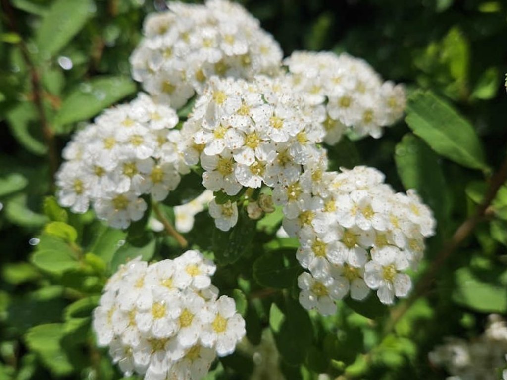 Tavolník niponský 'Snowmound' - okrasný keř původem z Japonska, kde roste na slunných svazích a v křovinatých lemech. V našich zahradách tvoří středně vysoký, hustý keř s obloukovitě klenutými větvemi. V dospělosti dorůstá obvykle 1,2–1,5 m výšky a 1,5–2 m šířky, podle stanoviště a způsobu řezu. Výhony jsou zpočátku vzpřímené, později se elegantně sklánějí do oblouků a vytvářejí měkkou, přirozenou siluetu, která působí dekorativně i mimo dobu květu. Listy jsou drobné, vejčité až obvejčité, sytě zelené, na podzim se mohou zbarvovat do žlutavých až lehce oranžových tónů. Největší ozdobou jsou květy, drobné, bílé, uspořádané v hustých chocholících podél celých větví. Objevují se zpravidla od konce května do června a v plném květu pokrývají keř tak, že větve připomínají sněhové závěje. Květy poskytují nektar a pyl pro včely a další opylovače, proto se hodí i do přírodně laděných výsadeb. Tavolník 'Snowmound' se uplatní v předzahrádkách, menších rodinných zahradách i veřejné zeleni. Hodí se jako solitér na trávníku, do smíšených keřových skupin s dříny, pustoryly nebo kalinami, stejně jako do volně rostoucích živých plůtků podél cest a plotů. Díky dobré snášenlivosti městského prostředí a mrazu je vhodný i pro sídlištní výsadby a menší parky, kde spolehlivě kvete a drží tvar po mnoho let.