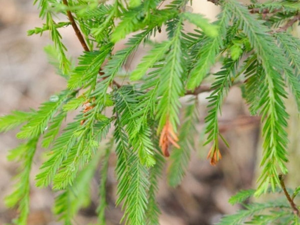 Tisovec dvouřadý 'Pendulum' - pochází z bažinatých lesů a říčních niv jihovýchodu USA, kde roste na periodicky zaplavovaných půdách. Kultivar 'Pendulum' patří k převislým formám, které netvoří výrazný terminál, a konečný tvar proto souvisí s výškou roubování a vedením výhonů. Větve se sklánějí k zemi a vytvářejí širokou, záclonovitou korunu. V dospělosti se obvykle pohybuje kolem 2,5–4 m výšky a 3–4 m šířky, u roubovaných rostlin může být výška výrazně ovlivněna místem roubování. Kůra je červenohnědá, vláknitá a podélně rýhovaná. Jehlice jsou měkké, ploché, 1–2 cm dlouhé, uspořádané ve dvou řadách. Od září do října přecházejí do oranžových a červenohnědých tónů a opadávají společně s brachyblasty. Květy jsou nenápadné, jednodomé, objevují se v březnu až dubnu. Samčí květenství tvoří převislé jehnědy, samičí šištice dozrávají v kulovité až vejčité šišky o průměru přibližně 2–3 cm. Dřevina se uplatňuje jako solitéra u vody, v rašeliništních kompozicích i v moderních výsadbách s travinami a kapradinami. Tento kultivar roste pomalu a má velmi charakteristický tvar – jeho větve se kloní dolů a vytvářejí elegantní, převislý vzhled, což mu dává velmi dekorativní a dramatický efekt.