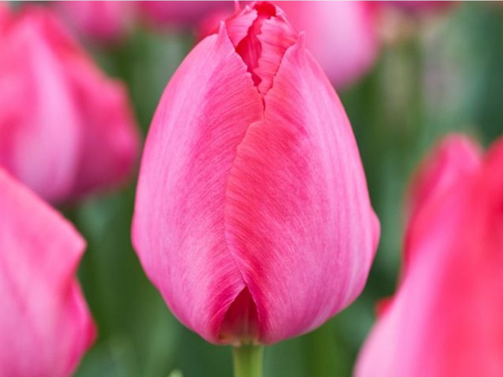 Tulipán 'Lady van Eijk' - kultivar, který na svých květech mísí všechny odstíny růžové! Květy mají typický zaoblený tvar, po rozevření je doplňují černé tyčinky a pestíky. Díky silným a pevným stonkům je vhodný i na větrná stanoviště. Listy jsou široce kopinaté, šedo zelené. Květy se tvoří v polovině jara, rostliny dosahují výšky kolem 50 cm. Krásně doplní jakoukoli skupinovou výsadbu. Jsou vhodné také k řezu.