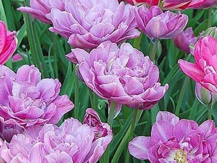 Tulipán 'Black Hero' - poměrně později kvetoucí kultivar s intenzivně tmavě fialovými až červenými květy. Poloplné květy připomínají vzdáleně pivoňky. Nakvétají v průběhu května, někdy až začátkem června. Kvete dlouho na pevných, silných stoncích a velmi často se používají jako řezané květiny. Dorůstají až 60 cm výšky a dobře odolávají vratkému jarnímu počasí.