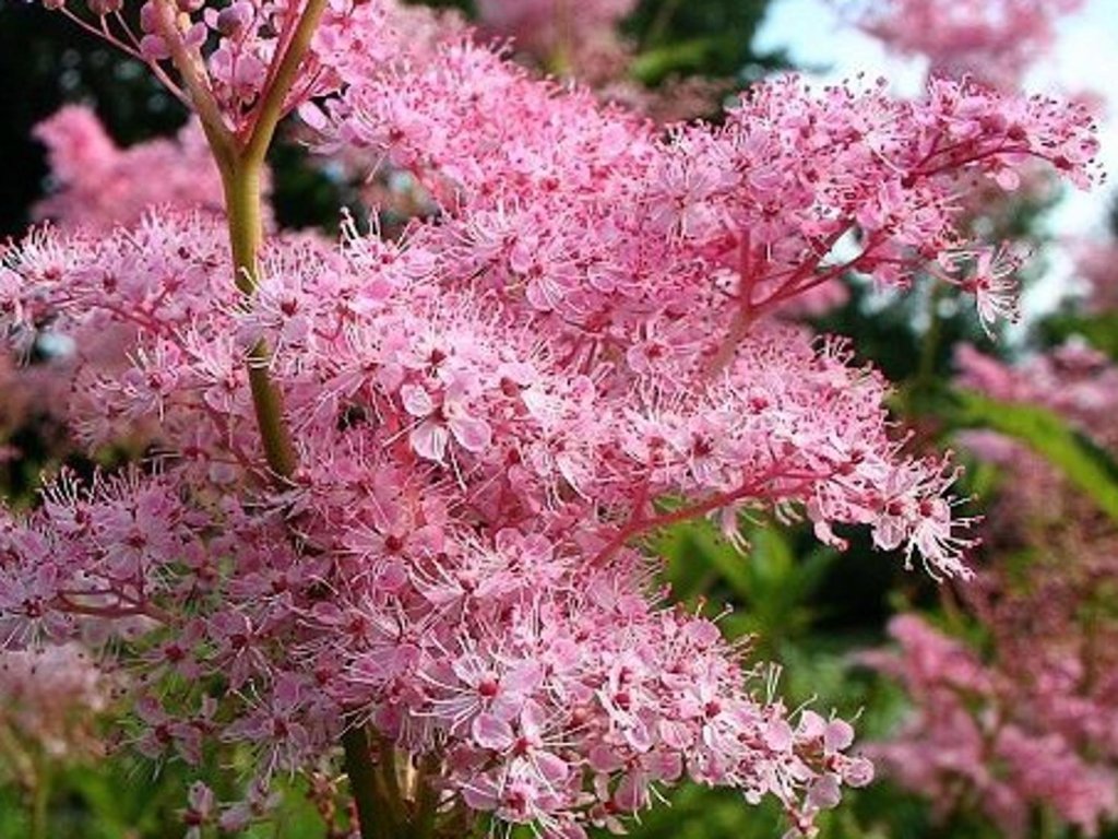 Tužebník červený 'Venusta' - okouzlující trvalka, která přináší do zahrady jemnost a eleganci Květy jsou nádherné a velké, tvoří dojem lehkosti a jemnosti. Mají intenzivní červeno-růžovou barvu, která vytváří kontrast s okolní zelení. Květy jsou složeny z mnoha drobných květních lístků, které se sbíhají do kaskádovitého tvaru, což přidává rostlině gracióznost a půvab. Květy nádherně voní. Dosahuje výšky obvykle 120 - 180 centimetrů, což z něj činí středně vysokou trvalku vhodnou pro různé části zahrady. Má vzpřímené stonky, které se větví a nesou květenství na jejich vrcholech. Je skvělou volbou pro kvetoucí záhony, kde její krásné květy přidávají barvu a texturu. Tato rostlina se dobře hodí kolem vodních prvků, jako jsou jezírka nebo potůčky, kde dodává půvabný a romantický prvek. Je skvělou volbou pro ty, kteří hledají elegantní a nenáročnou rostlinu pro svou zahradu. S jejími nádhernými květy a přitažlivým vzhledem představuje atraktivní prvek v každém zahradním prostoru.