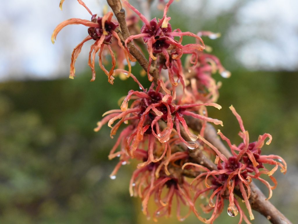 Pěstování: Je vhodné chráněné stanoviště na plném slunci nebo lehký polostín, aby se podpořilo bohaté kvetení a syté podzimní barvy. Keř preferuje kyselou až neutrální, humózní, mírně vlhkou, ale propustnou půdu s pH kolem 5,0-6,5 bez trvalého zamokření, v těžších půdách prospívá zvýšený záhon s přídavkem rašeliny a kompostu a vrstva mulče, která omezuje výkyvy teplot i výparu. Sazenice se vysazují od března do května nebo na podzim od září do listopadu, s rozestupy kolem 2,5-3 m, aby měla rostlina prostor k plnému rozvinutí koruny. Zálivka bývá nejdůležitější v prvních letech po výsadbě a v delším letním suchu, kdy se volí hlubší, méně časté prolití, u starších jedinců je kořenový systém již odolnější. Hnojení se provádí střídmě, na jaře postačí vrstva dobře zetlelého kompostu nebo pomalu rozpustné hnojivo pro okrasné keře. Vilín snáší pouze lehký tvarovací řez ihned po odkvětu, odstraňují se především poškozené a křížící se větve, starší rostliny silnější zásah hůře regenerují. V našich podmínkách je keř mrazuvzdorný do -25 °C, mladé rostliny však ocení zimní mulč kořenového prostoru a závětří. Obecně jde o zdravý druh, který bývá málo napadán škůdci, v přemokřených půdách se mohou objevit houbové choroby kořenů či kůry, jimž předchází dobrá drenáž a vhodná volba stanoviště. Při vhodně zvoleném stanovišti a základní péči se vilín stává dlouhověkou dominantou zimní zahrady a spolehlivým zdrojem květů pro předjarní vazby.