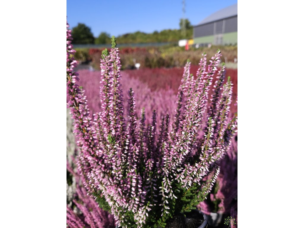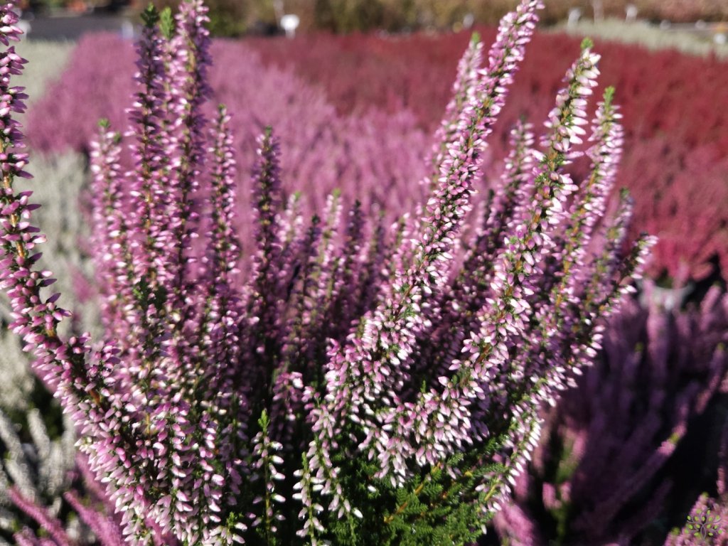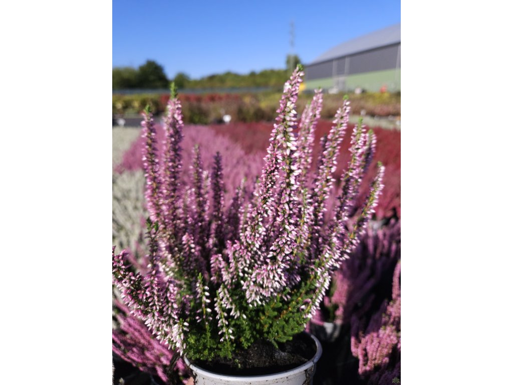 Vřes obecný 'Michelle' - krásně zbarvený kultivar vřesu, který vytváří vzpřímeně rostoucí, stálezelený keřík dorůstající do výšky okolo 40 cm. Nakvétá hustě již od začátku září. Zářivě růžové květy ve tvaru poupat se nikdy zcela neotevřou a rostlina si tak zachová svůj dekorativní vzhled až do zimy. Květy skvěle kontrastují se svěže zelenými listy. Je ideální volbou do skalek, do skupinové výsadby nebo samostatně do nádob.