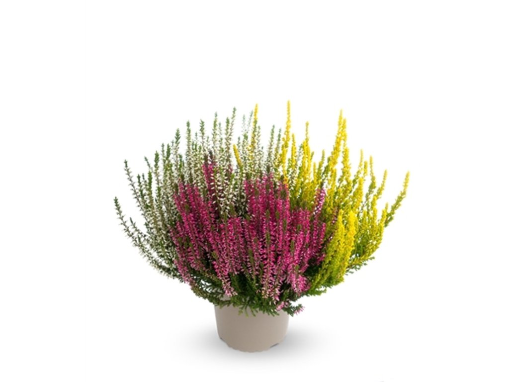 Vřes obecný 'Trio Girls' - tři druhy vřesů v jednom květináči. Nechte se překvapit, která kombinace doputuje přímo k Vám. Zda Athene/Alicia/Golden Angie, nebo Athene/Alicia/Aurelia. Možné jsou samozřejmě i jiné kombinace, ale věříme, že všechny vás mile překvapí, jelikož jsou stejně krásné. Dorůstá do výšky okolo 30 cm. Listy tvoří drobné jehličky, které mají svěží zelenou barvu - ta se může během sezóny různě barevně měnit. Je ideální volbou do skalek, do skupinové výsadby nebo samostatně do nádob.