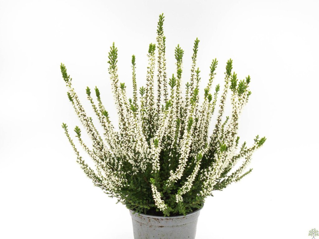 Vřes obecný 'Veluwe' - vzpřímeně rostoucí stálezelený keřík, květenství je v barvě slonoviny, jasně zelené stonky barvu květů podtrhují. Velmi povedený kultivar, který dorůstá do výšky cca 55 cm. Květy se objevují již od srpna a vydrží až do prosince. Spolu s růžovými kultivary bude na Vaší zahradě vynikat. Tento okouzlující vřes Vám udělá radost během podzimních měsíců.