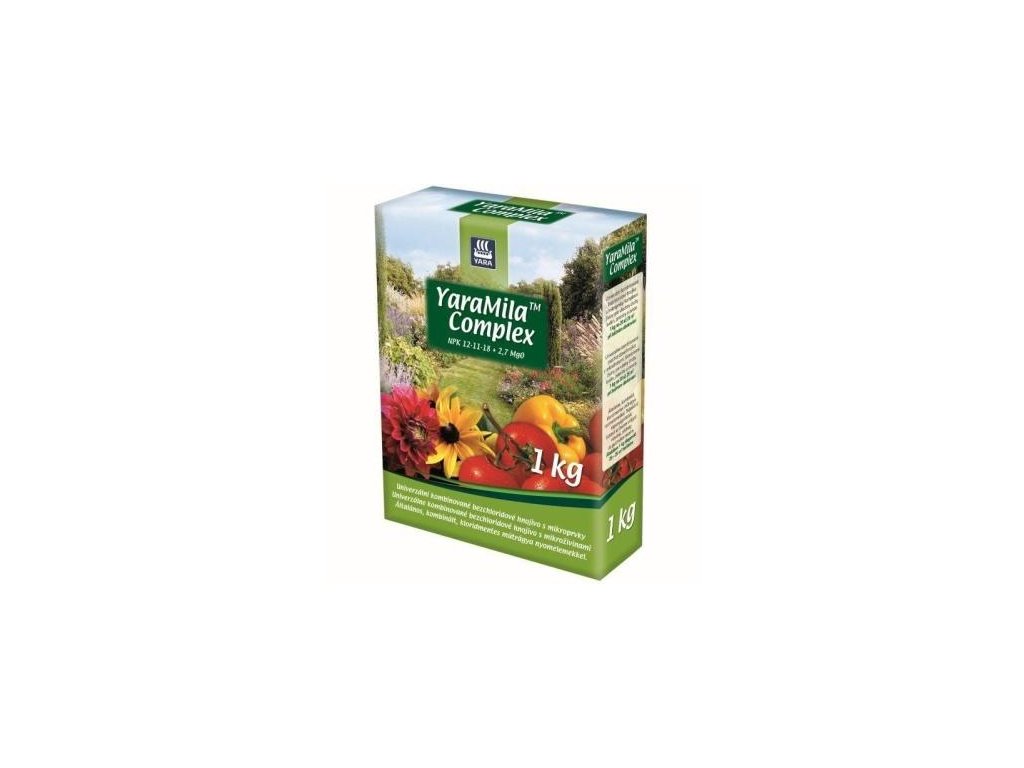 YaraMila Complex (HydroKOMPLEX) je univerzální kombinované bechloridové hnojivo s mikroprvky, které podporují využití živin pro správný vývoj rostlin. Hnojivo obsahuje také hořčík, který zajišťuje vyšší úrodu a lepší vybarvení plodů. Je vhodné k základnímu hnojení a přihnojování všech druhů zeleniny, květin a ovoce. Díky vyváženému poměru živin docílíme zdravého a silného růstu a chutných šťavnatých plodů. složení: dusík–fosfor–draslík v poměru 12–11–18 + 2,7 % hořčíku obsahuje mikroprvky B, Fe, Mn, Zn k základnímu hnojení a přihnojování všech druhů zeleniny, květin a ovoce dávkování: 1 kg hnojiva vystačí cca na 13 - 125 m2 dle typu rostlin.
