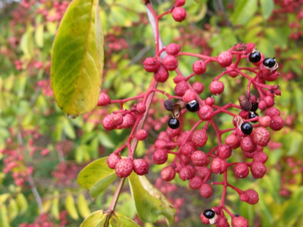 Žlutodřev čínský - známý také jako sečuánský pepř, je opadavý keř až menší strom z čeledi routovitých (Rutaceae) původem z východní Číny, Koreje a Taiwanu. V přírodě osidluje světlé lesy a křoviny na svazích a v údolích, často na propustných, kamenitých či písčitých půdách. V kultuře vytváří vícekmen s nepravidelně rozložitou korunou a v našich podmínkách obvykle dorůstá 3–6 m při šířce 3–5 m. Letorosty nesou nápadné, široké trny, které z dřeviny dělají výrazný solitér i účinnou bariéru do volného živého plotu. Kůra starších kmenů je šedohnědá, s jemným rýhováním. Listy jsou střídavé, zpeřené, se 7–11 lístky o délce zhruba 2–5 cm, po promnutí silně aromatické. V květnu až červnu se objevují drobné žlutozelené květy v latách, cenné pro opylovače. Rostliny bývají dvoudomé, samičí jedinci však často nasazují plody i bez přítomnosti samčích rostlin. Od září do října dozrávají červené tobolky, které se otevírají a ukazují lesklá černá semena. Kořením je sušená slupka plodu s citrusovým aroma a typickým jemně znecitlivujícím dozvukem. Podzimní zbarvení listů přechází do žlutých až červenavých tónů a prodlužuje sezónní efekt. V kompozici dobře navazuje na okrasné trávy, levandule nebo dřeviny s tmavým olistěním včetně městských zahrad.